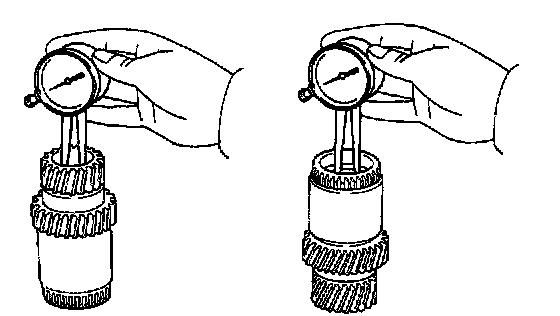 Using a dial indicator, measure the inside diameter of the planetary sun gear bushing.