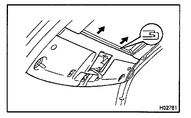 Remove the front roof headlining as shown in the illustration.