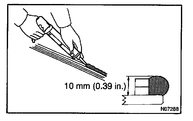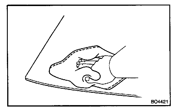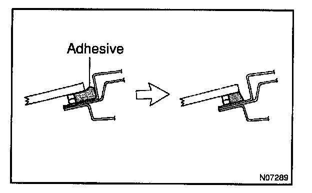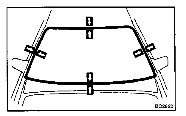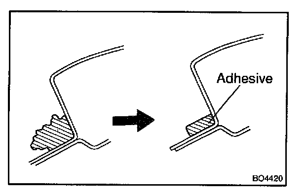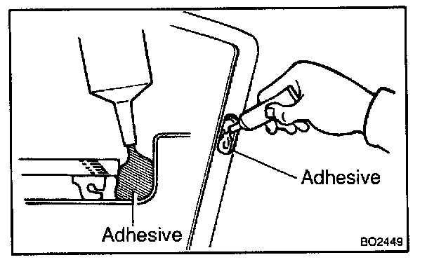13. APPLY ADHESIVE AT WINDSHIELD UPPER MOULDING INSTALLATION AREA