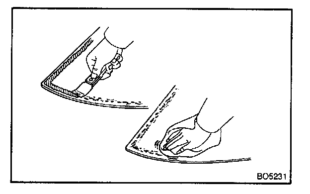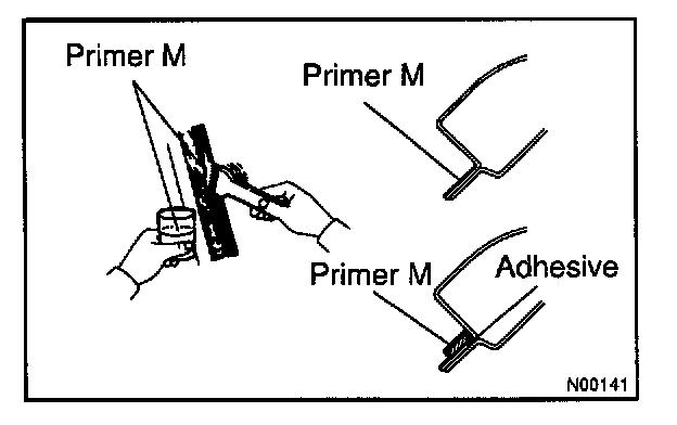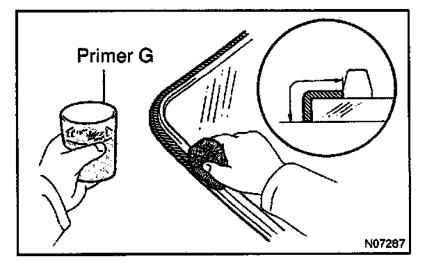 a. Using a brush or sponge, coat the edge of the glass and the contact surface with Primer G.