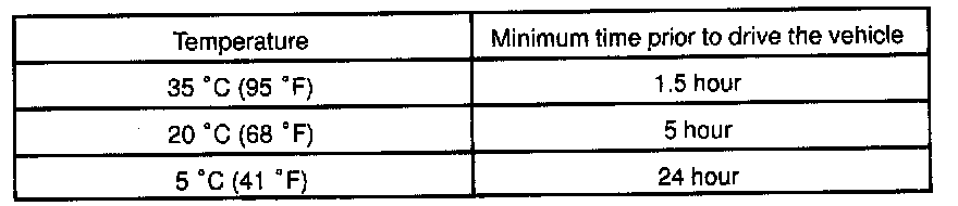NOTE: Take care not to drive the vehicle during the time described in the table.