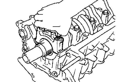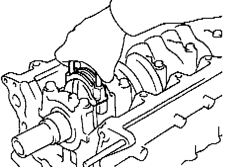 b) Remove the oil seal retainer by prying the area between the oil seal retainer and main bearing cap with a screwdriver.