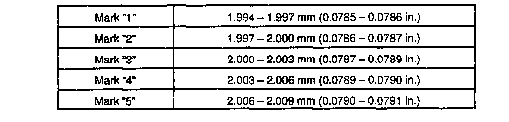 Thrust washer thickness: 1.940 - 1.990 mm (0.0764 - 0.0783 inch)