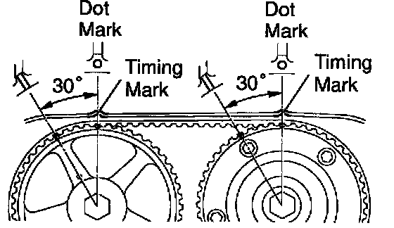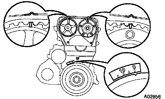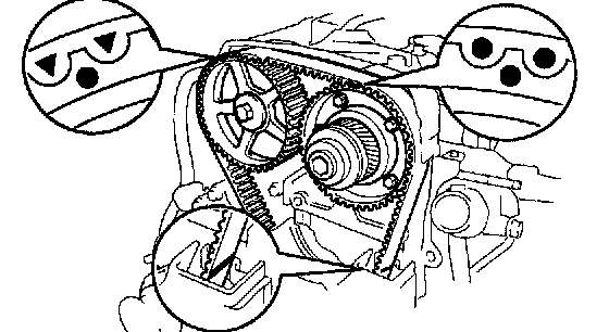 b. Check that each pulley aligns with the timing marks as shown in the illustration.