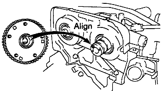 a. Align the camshaft knock pin with the groove on the pulley, and slide on the timing pulley.
