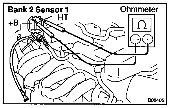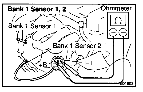 INSPECTION1. INSPECT HEATER RESISTANCE OF HEATED OXYGEN SENSORS (BANK 1, 2 SENSOR 1 AND BANK 1 SENSOR 2)