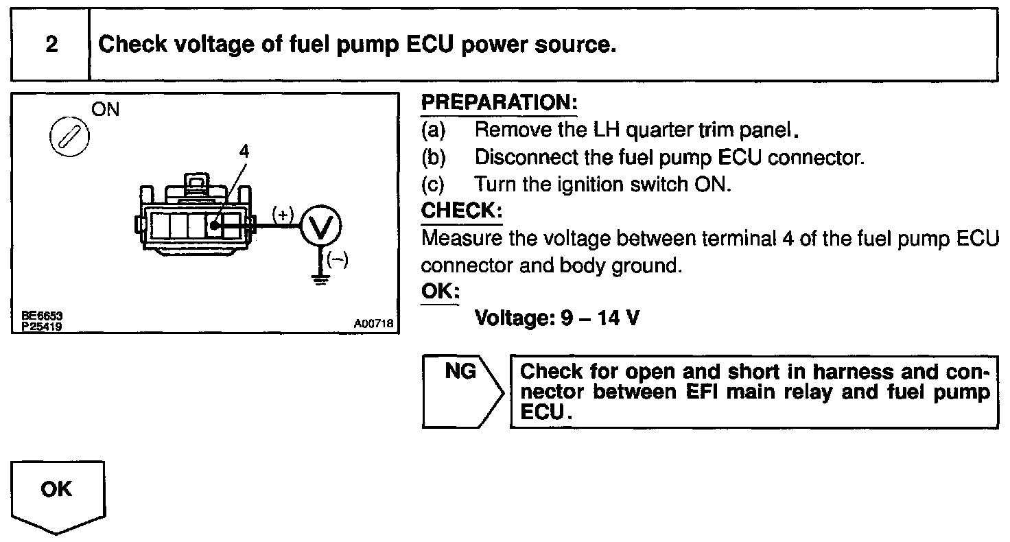 The fuel pump ECU then outputs Hi voltage (battery positive voltage) to the fuel pump so that the fuel pump operates at high speed.
