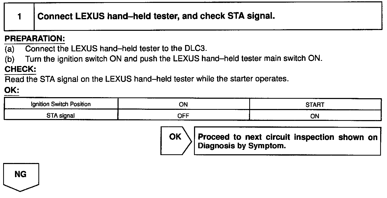 HINT: This diagnostic chart is based on the premise that the engine is cranked normally. If the engine is not cranked, proceed to the diagnosis by symptom.