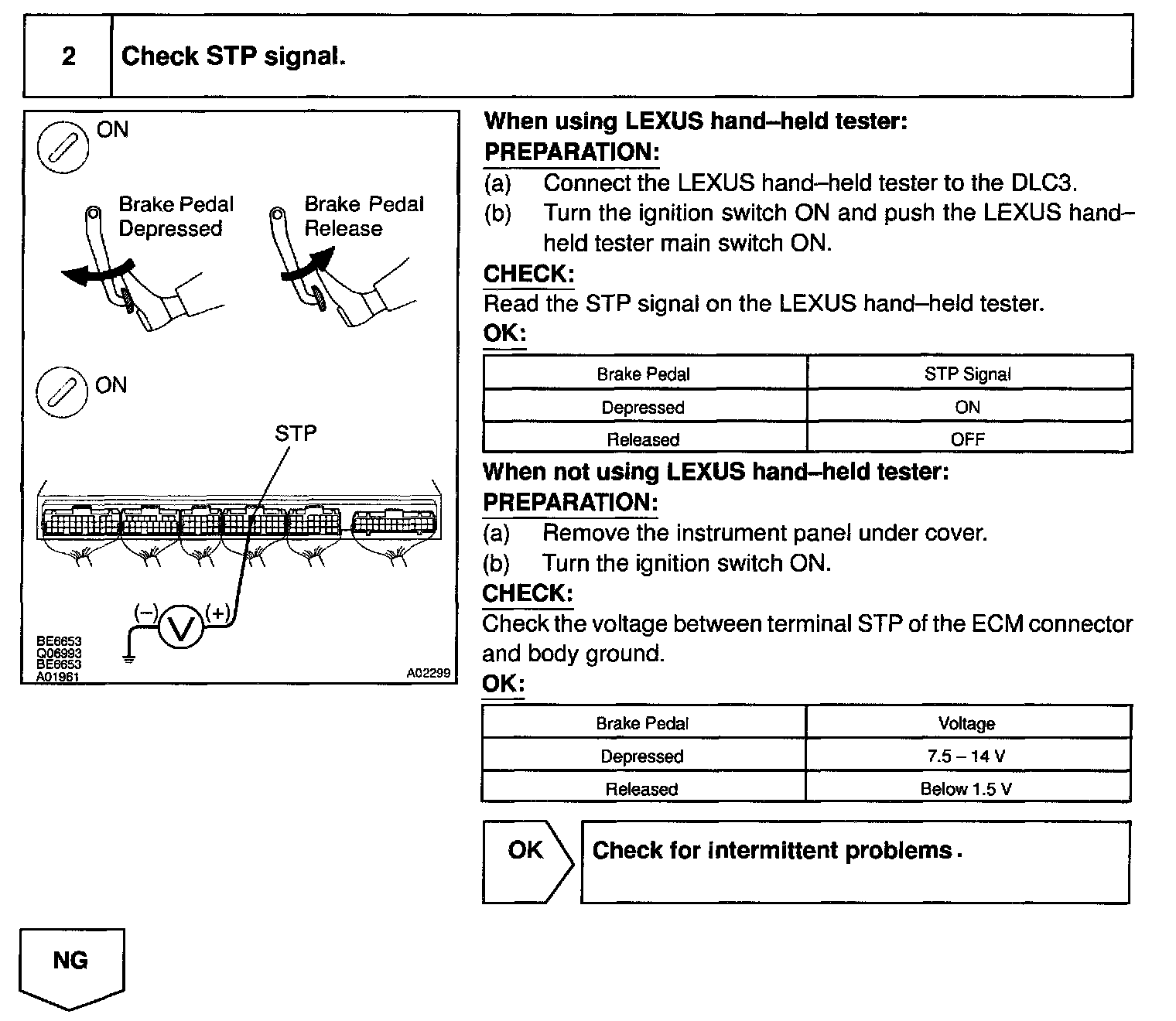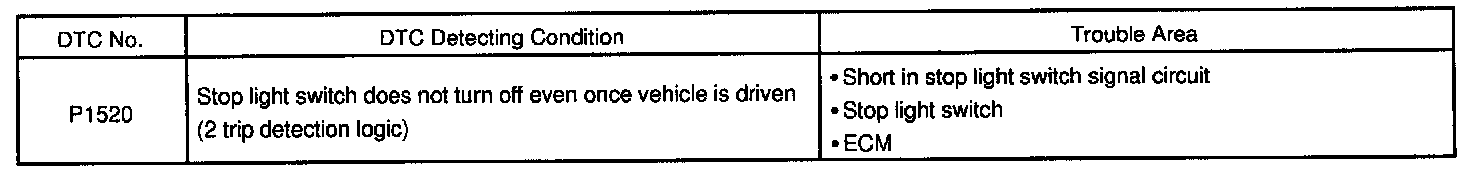 The STP signal is used mainly to control the fuel cut-off engine speed. (The fuel cut-off engine speed is reduced slightly when the vehicle is braking.)