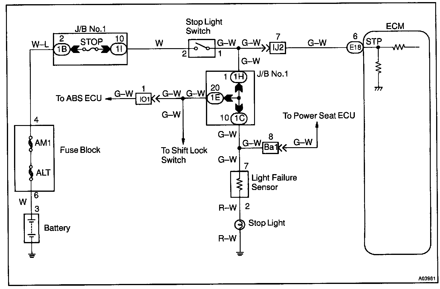 CIRCUIT DESCRIPTIONThis signal is used to detect when the brakes have been applied. The STP signal voltage is the same as the voltage supplied to the stop lights.