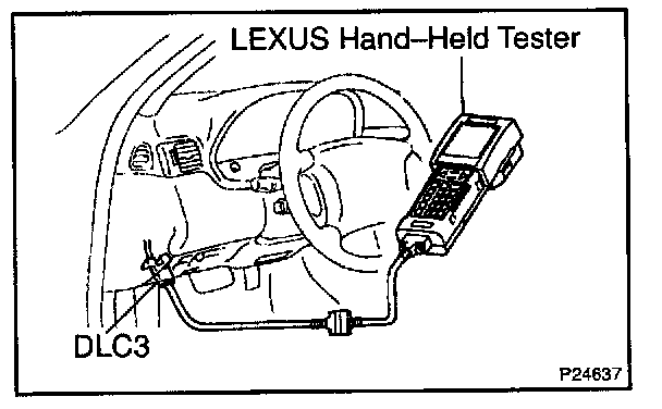 To check the DTCs, connect the OBD II scan tool or LEXUS hand-held tester to the Data Link Connector 3 (DLC3) on the vehicle. The OBD II scan tool or LEXUS hand-held tester also enables you to erase the DTCs and check freeze frame data and various forms of engine data. (For operating instructions, see the OBD II scan tool's instruction book.)