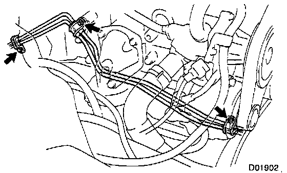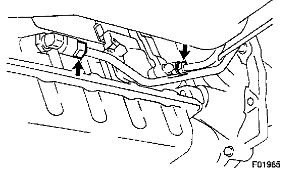 c. Disconnect the 2 oil cooler pipes from the transmission.
