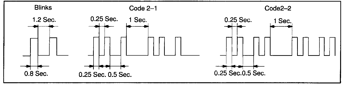 - When key code registration could not be performed on the automatic registration mode, code 2-1 is output from the security indicator and when inserting the already registered key, code 2-2 is output.