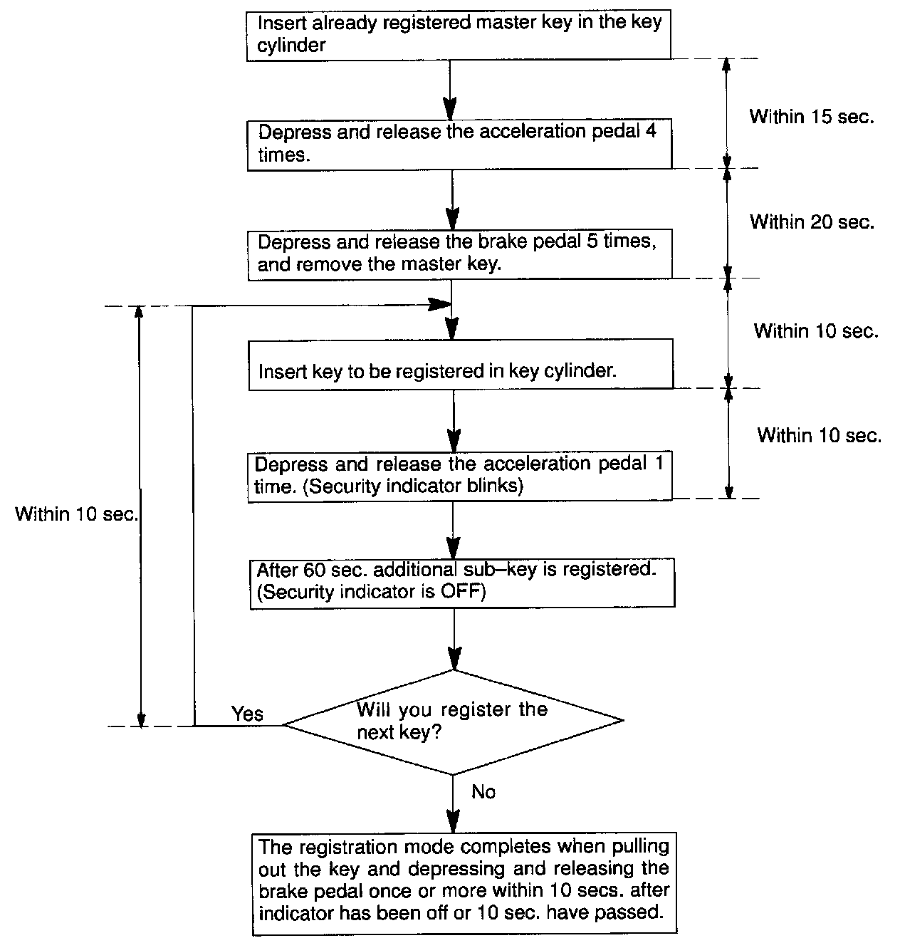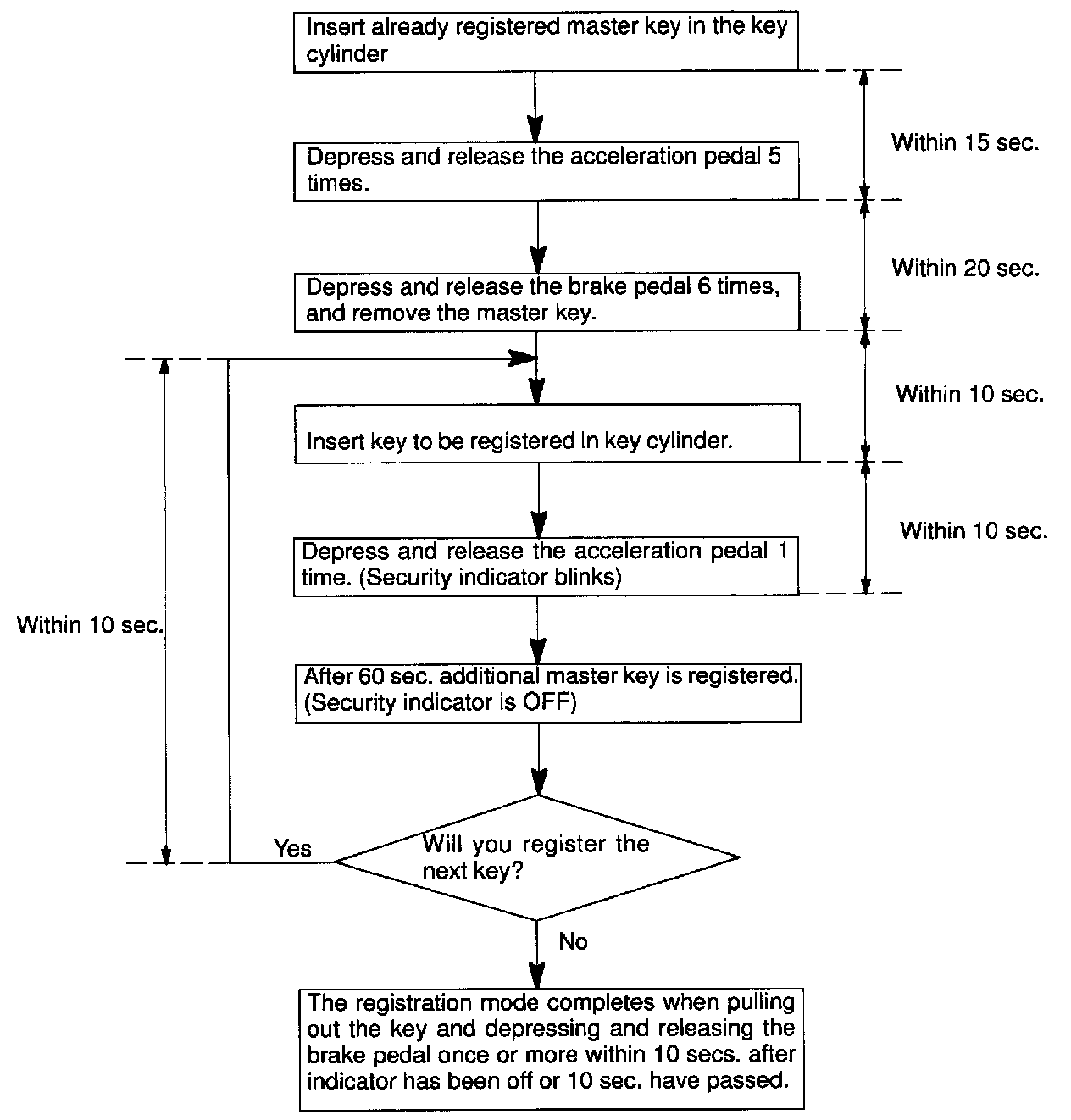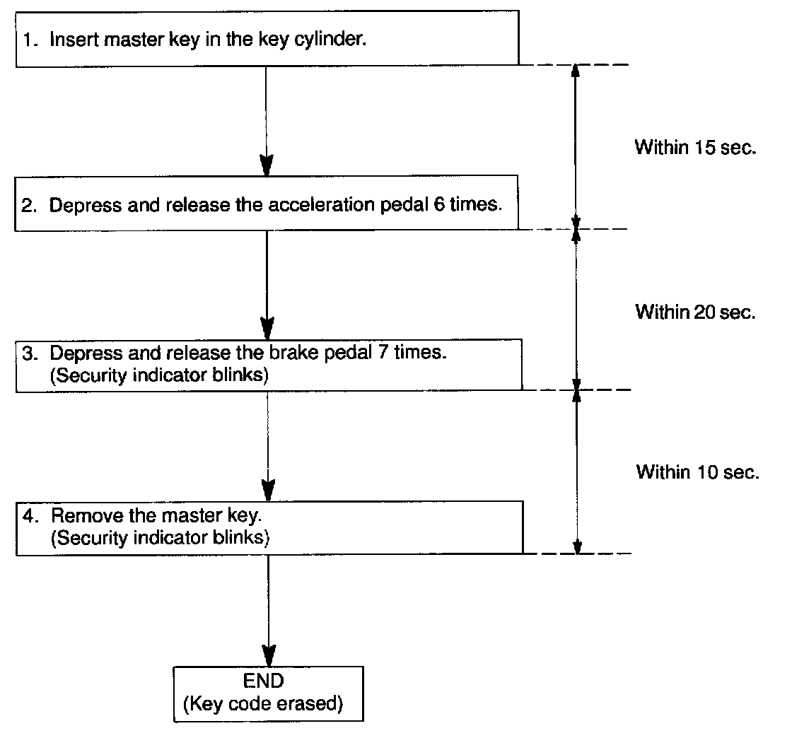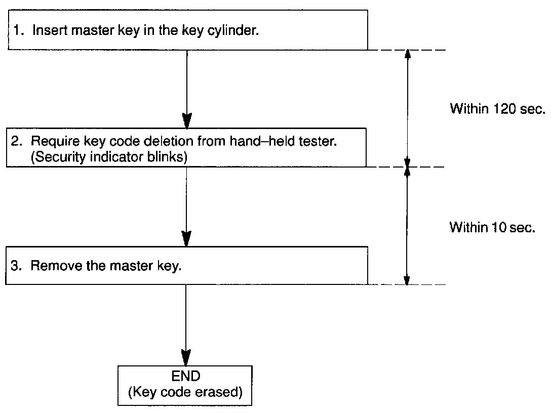 HINT: When the key cannot be pulled out in the step 4, key code deletion is canceled. (Security indicator is OFF.)