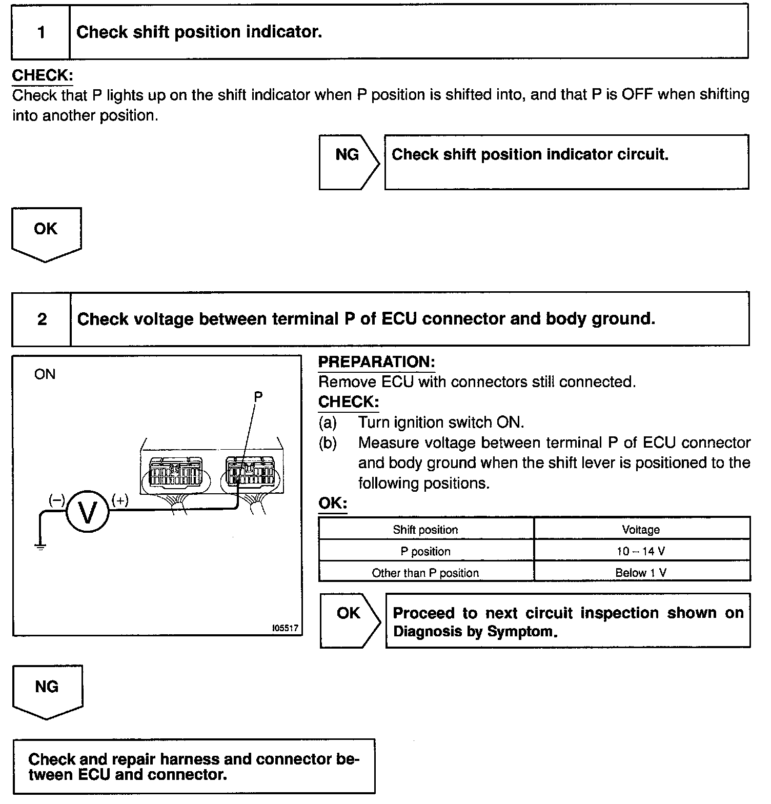 When the return switch is turned ON with the IG SW ON and the shift in P position, the ECU performs return operation