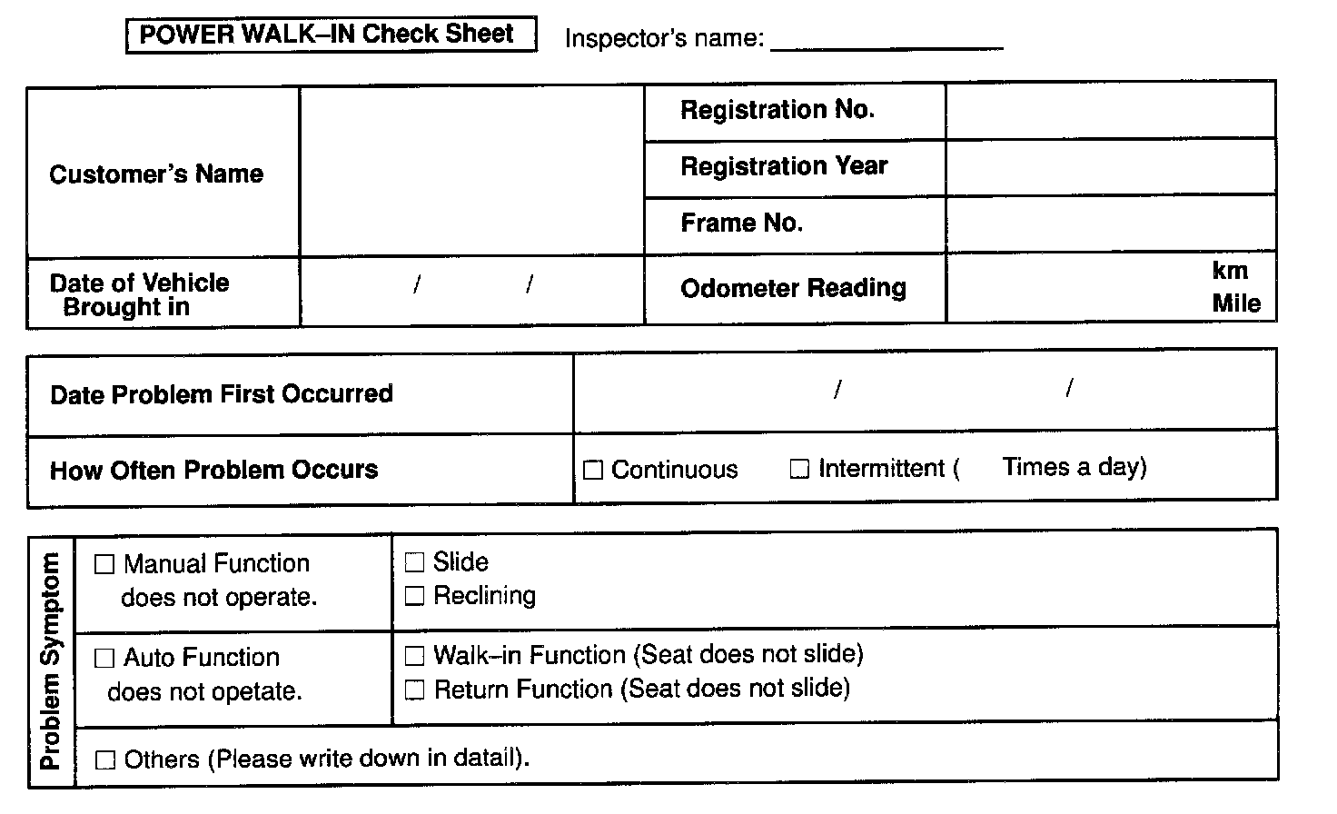 power Walk-in Check Sheet: