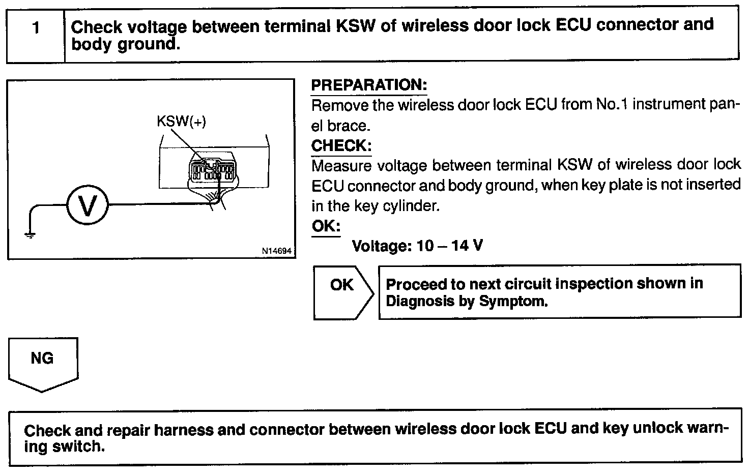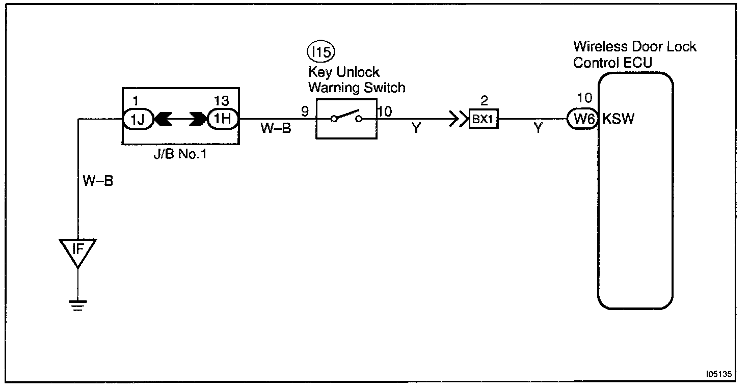 CIRCUIT DESCRIPTIONWhen the key is inserted in the ignition key cylinder, the key unlock warning switch comes ON, and when the key is not inserted the switch is OFF.