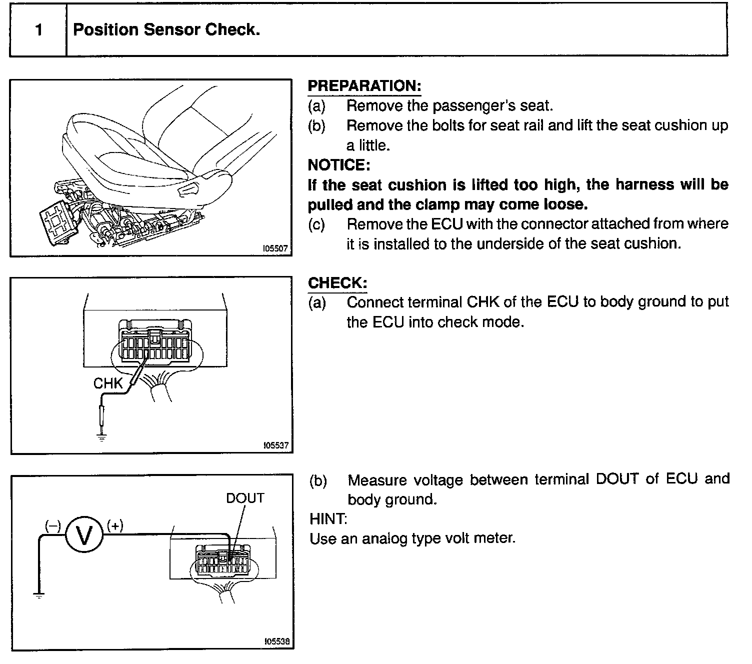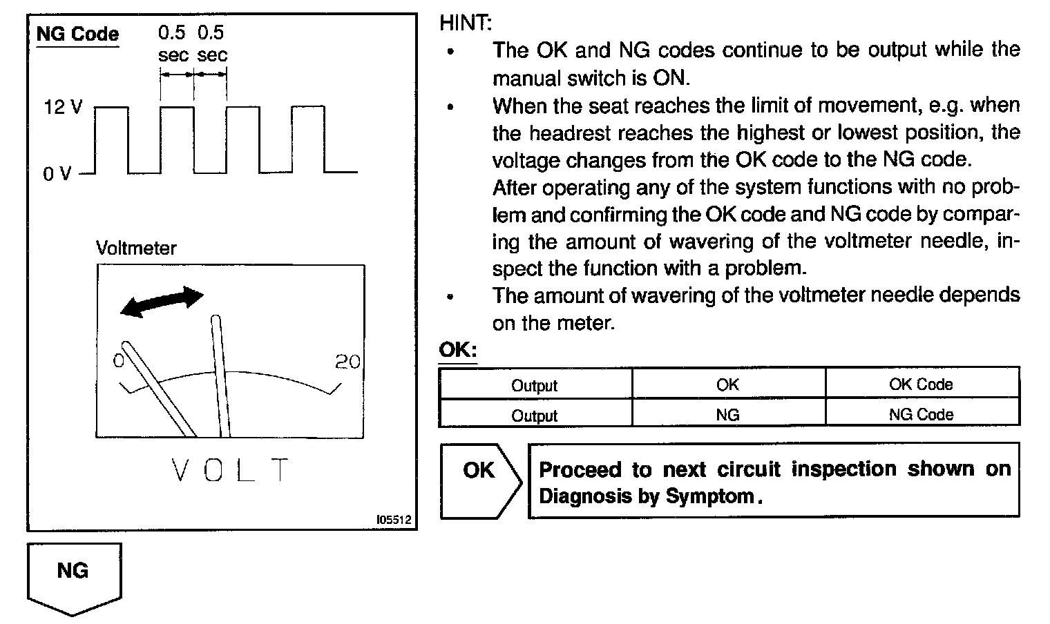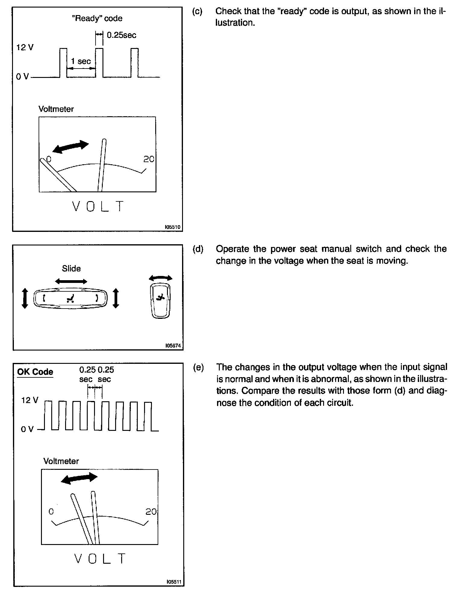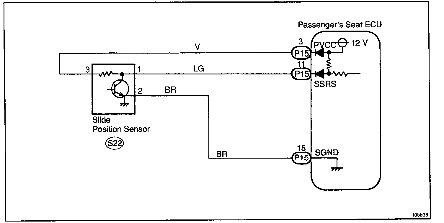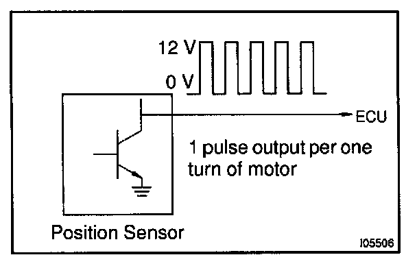 The position sensor senses movement of the seat and send pulse signals to the ECU. The position sensor sends pulses to the ECU in proportion to the amount of seat movement, as shown in the diagram.