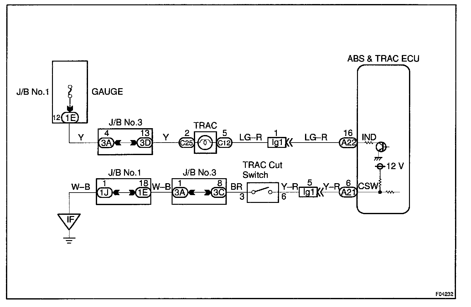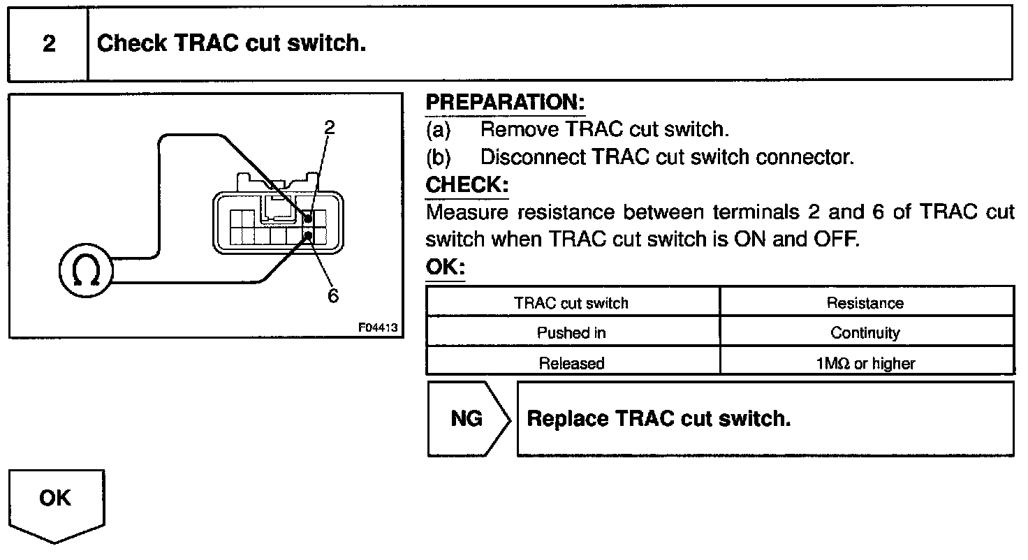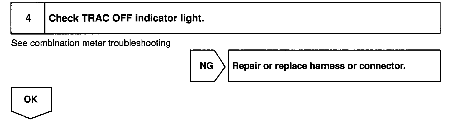 CIRCUIT DESCRIPTIONThis is the TRAC control main switch. When the TRAC cut switch is pushed on, TRAC control goes off and the TRAC OFF indicator lights up. This indicator blinks for warnings when the trouble occurs and for displaying DTC.