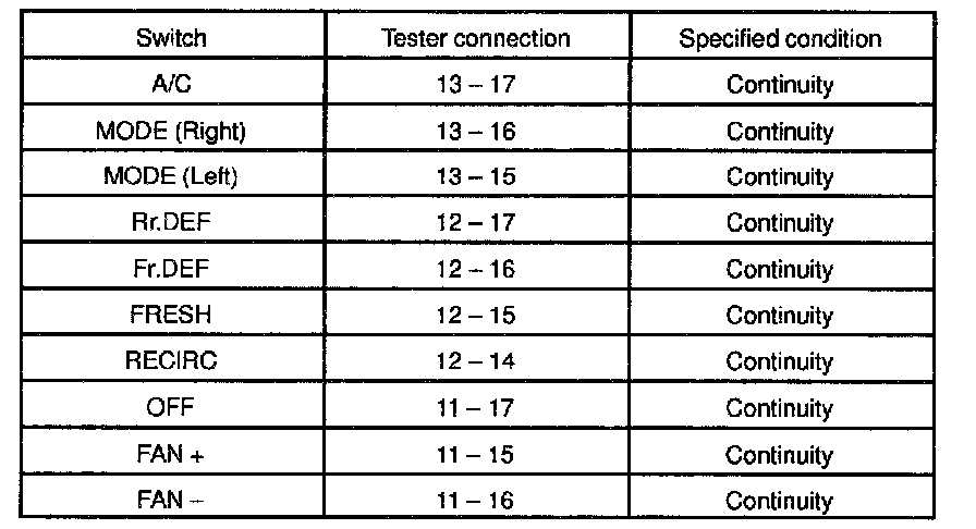 5. INSPECT SWITCH OPERATION (A/C Control Panel)