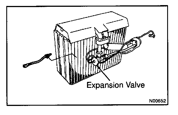 b. Loosen the 2 nuts and remove the expansion valve from the tubes.
