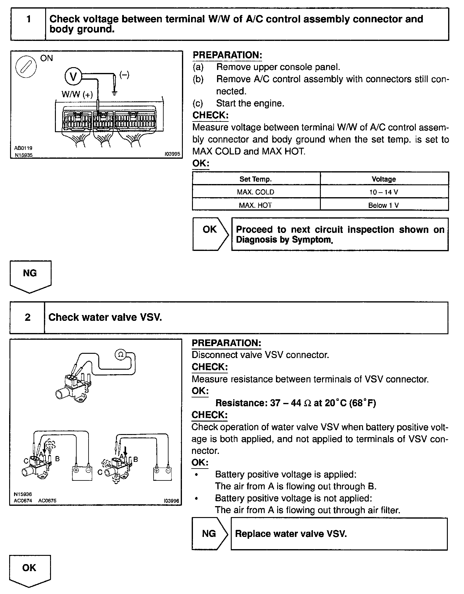 This turns the water valve VSV ON so that engine coolant flows to the heater core.