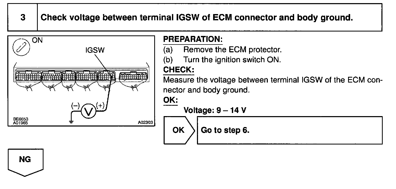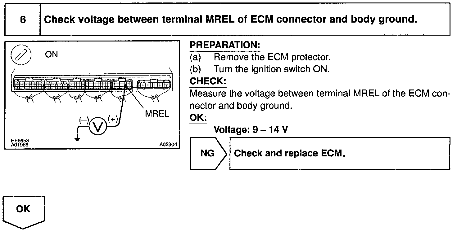 This signal causes current to flow to the coil, closing the contacts of the EFI main relay and supplying power to terminal +B of the ECM.