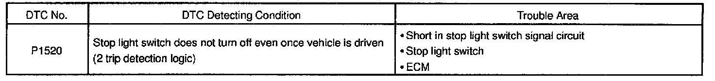 The STP signal is used mainly to control the fuel cut-off engine speed. (The fuel cut-off engine speed is reduced slightly when the vehicle is braking.)