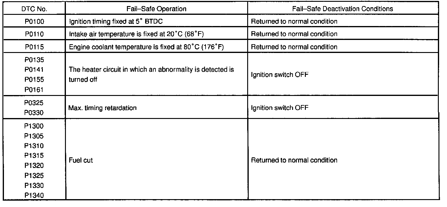 If any of the following codes is recorded, the ECM enters fail-safe mode.
