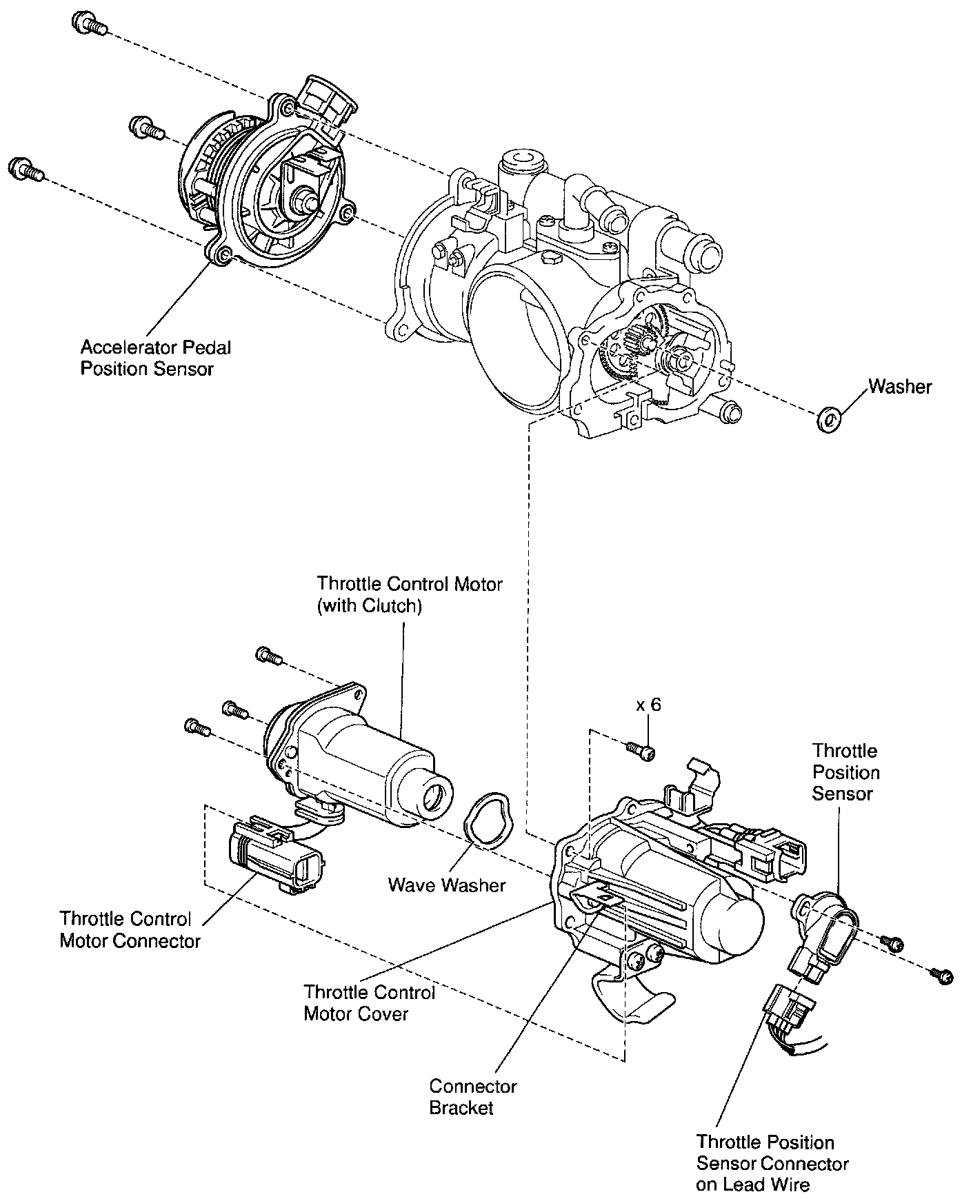 - To prevent deterioration, do not shock the throttle position sensor and accelerator pedal position sensor.