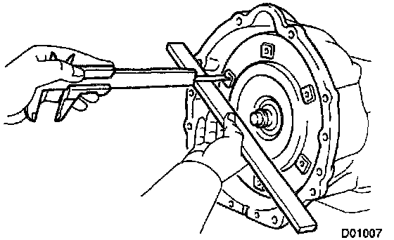 Using calipers and a straight edge, measure the distance from the installation surface of the transmission housing to the installation surface of the torque converter clutch.