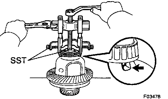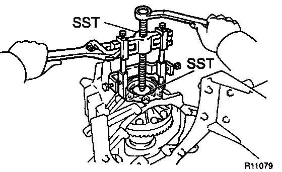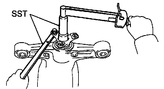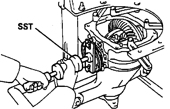 Using SST and a torque wrench, measure the preload of backlash between the drive pinion and ring gear.