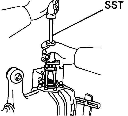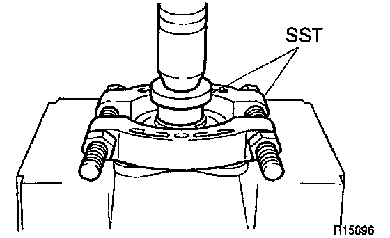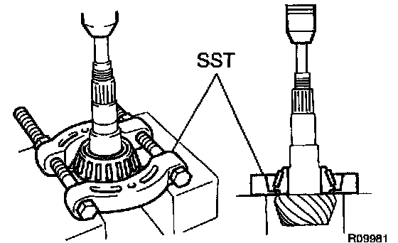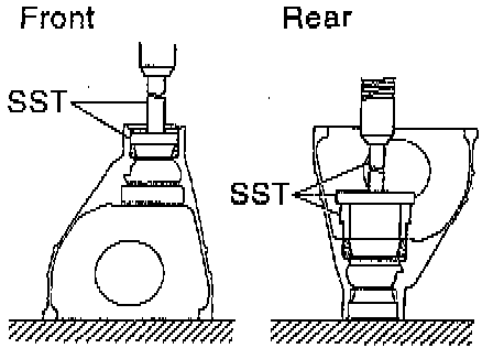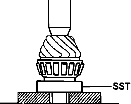 Using SST and a press, remove the rear bearing from the drive pinion.