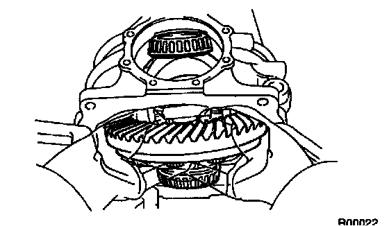 Take the differential case out of the carrier while lifting the ring gear side, as shown in the illustration.