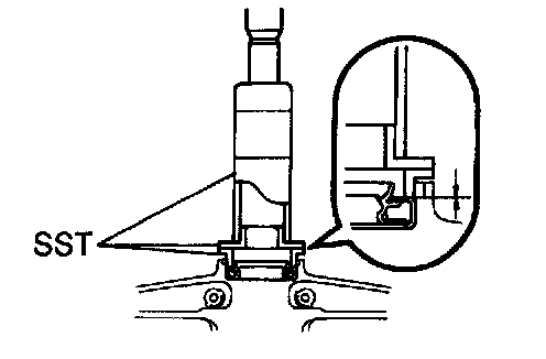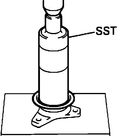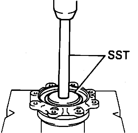 a. Apply MP grease to a new oil seal lip. Using SST, install the oil seal until its end is flush with the surface of the differential carrier.