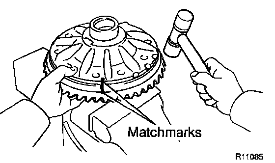 c. Using a plastic hammer, tap on the ring gear to separate it from the differential case.