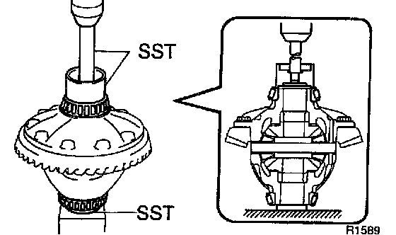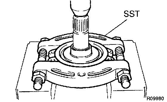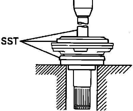 Using SST and a press, install the 2 new oil seals to the 2 carrier retainers.