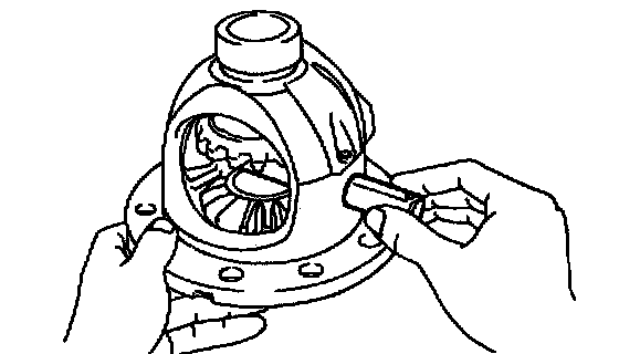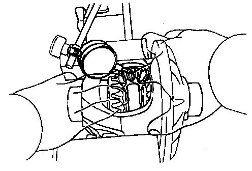 Install the drive side bearing in the differential carrier first, as shown in the illustration, then install the differential case.