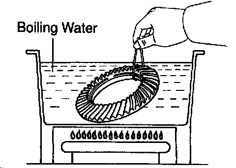 a. Coat 3 or 4 teeth at the 3 different positions on the ring gear with red lead.