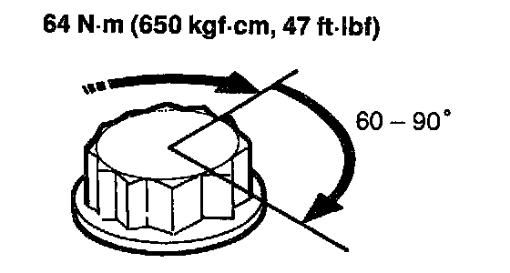 If the preload is less than the specification, retighten the nut 13 Nm (130 kgf-cm, 9 ft. lbs.) at a time until the specified preload is reached.