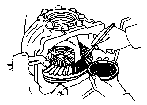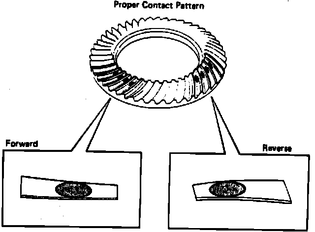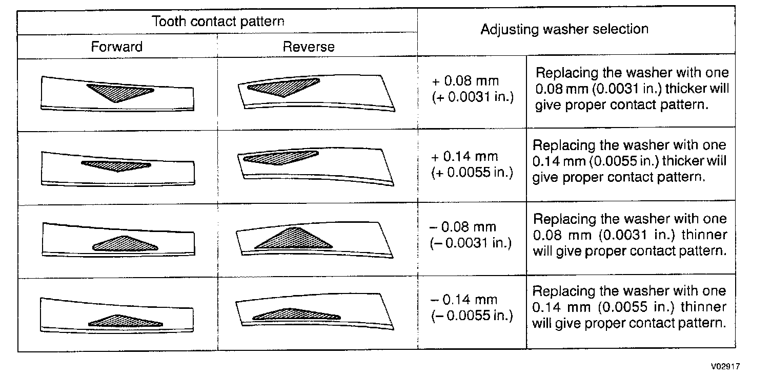 If tooth contact pattern is not correct, replace the adjusting washer installed on the front of the drive pinion rear bearing to adjust it.