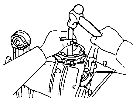 Using a brass bar and hammer, remove the 2 outer races and washer from the differential carrier.