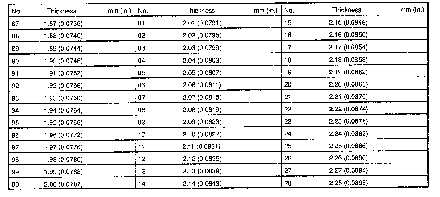 HINT: Adjust washers in 42 different thicknesses in 0.01 mm (0.004 inch) units are available.