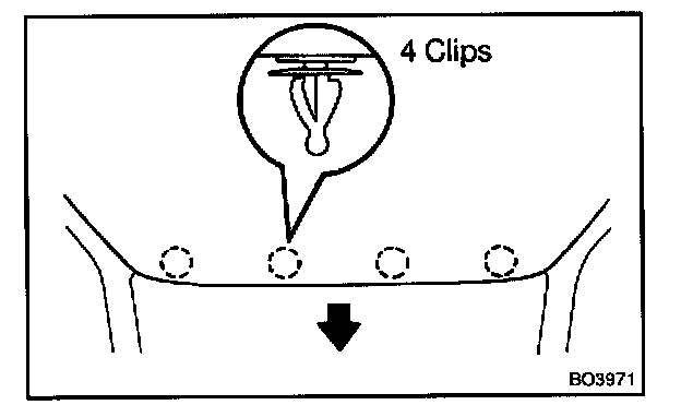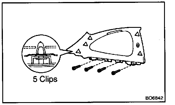 Using a scraper, pry off the moulding from the 6 clips and remove the moulding.