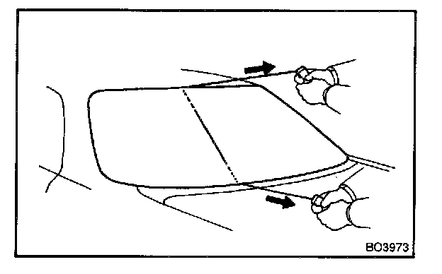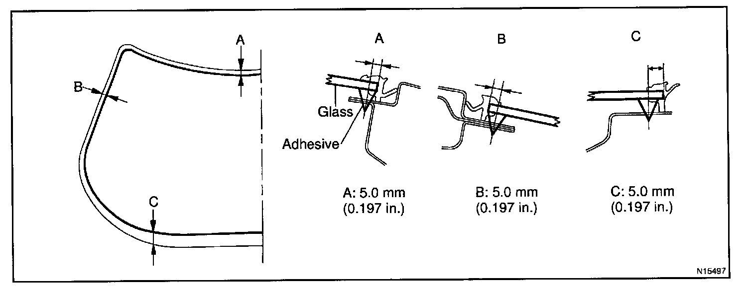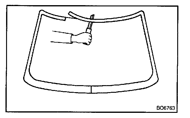 c. Hold the windshield glass in place securely with a protective tape or equivalent until the adhesive hardened.
