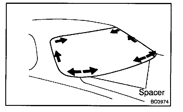 c. Coat the glass with adhesive on all contact surfaces as shown.