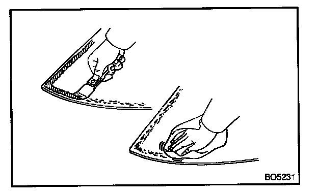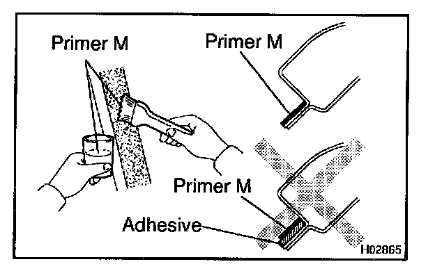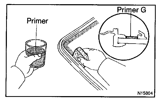 a. Using a brush or sponge, coat the edge of the glass and the contact surface with Primer G.