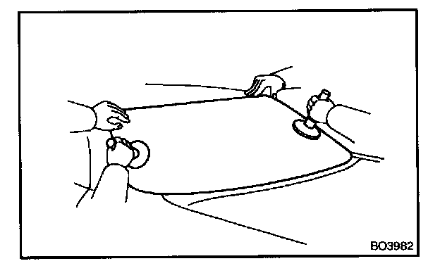 Pull out the rear end of roof headlining with your hand and disconnect it.