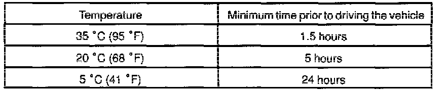 NOTE: Take care not to drive the vehicle during the time described in the table.