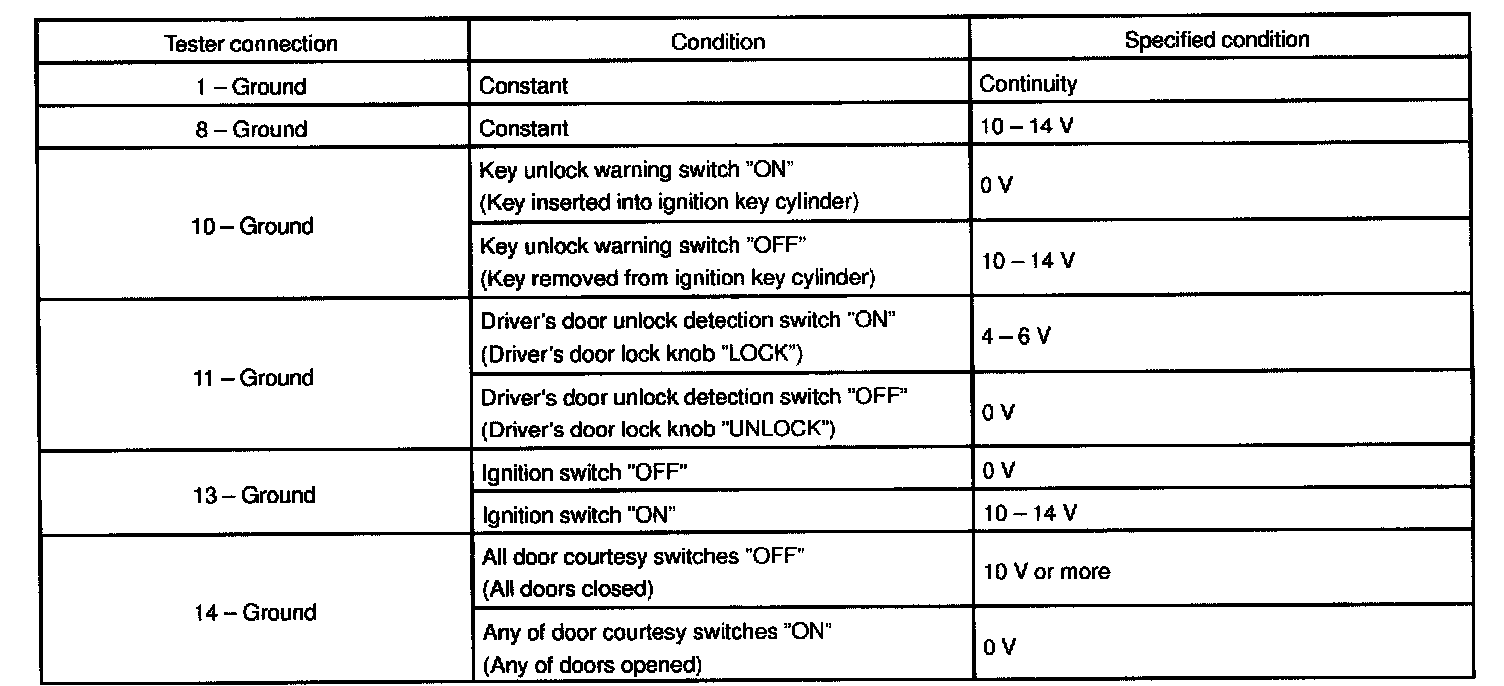 If the circuit is not as specified, inspect the circuit connected to other parts.